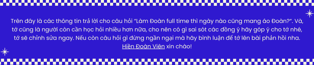6 thoughts on “LÀM ĐOÀN FULL TIME THÌ NGÀY NÀO CŨNG MANG ÁO ĐOÀN?